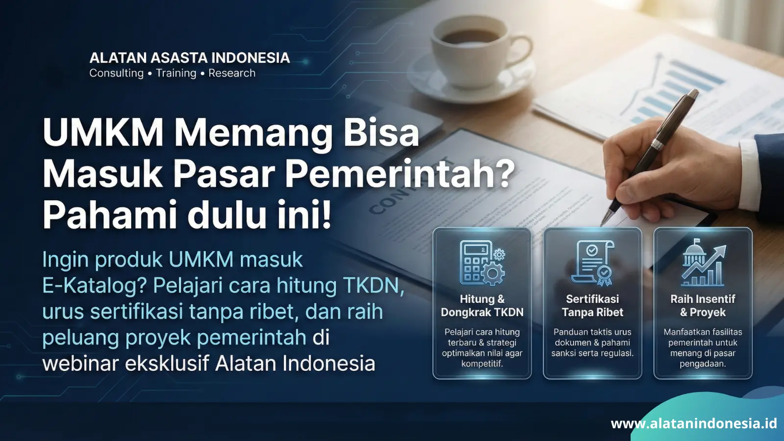 Ingin produk Anda tembus e-katalog dan proyek pemerintah? wajib paham ini apa yang akan anda kuasai selama 2 ham? 1. Cara hitung TKDN IK Terbaru 2. Trik Mendongkrak nilai TKDN agar lebih kompetitif 3. Langkah taktis mengurus sertifikasi tanpa ribet 4. Memahami sanksi dan cara mendapatkan insentif pemerintah