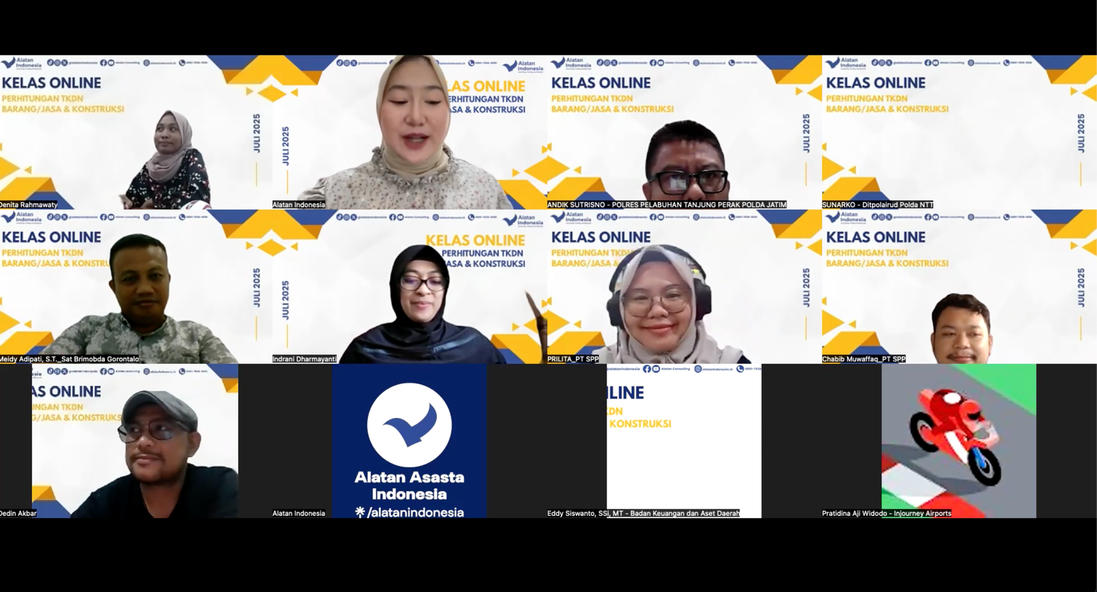 Detail RenstraTKDN Industri Kecil adalah pelatihan yang dilakukan melalui platform digital, memungkinkan peserta untuk berpartisipasi dari mana saja dengan menggunakan perangkat yang terhubung ke internet.