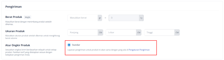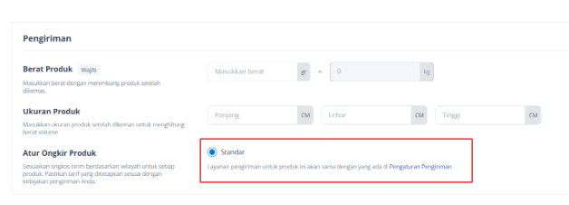 Pengiriman Standar berarti produk akan dikirim dengan kurir logistik yang telah ditetapkan pada pengaturan pengiriman.
