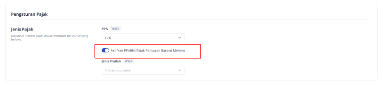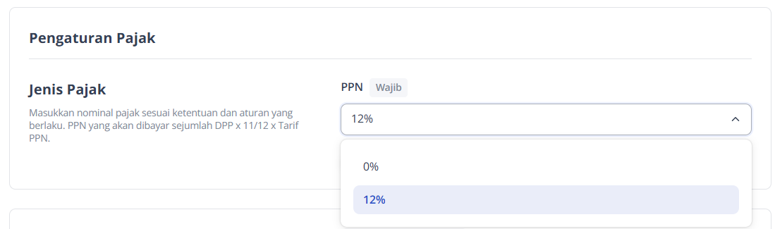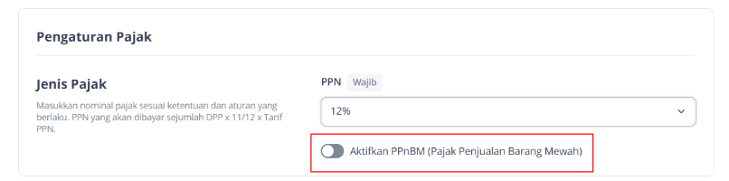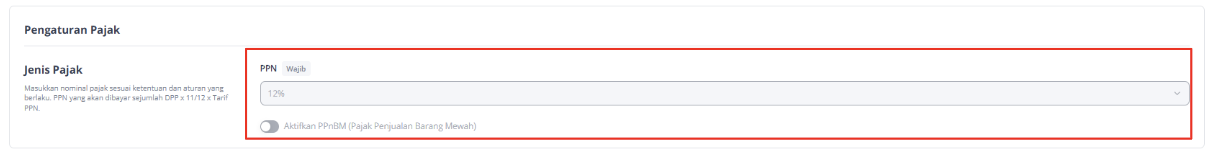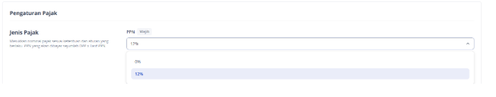 g. Pengaturan Pajak: terisi otomatis dan tidak dapat diubah