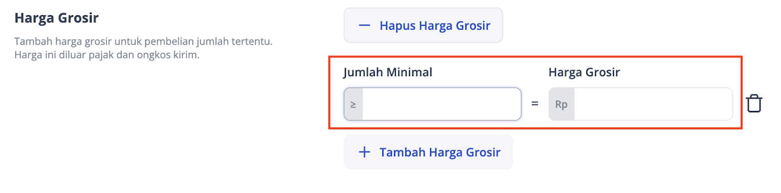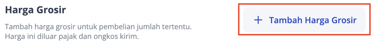 - Jika Penyedia menerapkan Harga Grosir, maka Penyedia dapat melakukan pengaturan harga grosir pada kolom Harga Grosir, lalu klik tombol “Tambah Harga Grosir”.