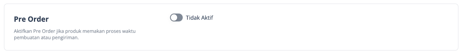 Jika Produk yang ingin didaftarkan merupakan produk Pre-Order, maka Penyedia harus mengganti status pre-order menjadi aktif.