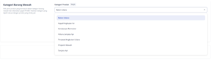 - Negara Asal → Bagian ini bersifat opsional dan diwajibkan untuk mengisi negara asal jika klasifikasi produk yang dipilih “impor”.