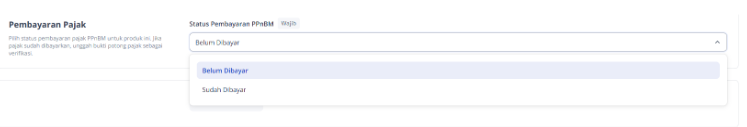 Nama Produk akan secara otomatis terkunci sesuai dengan daftar produk sektoral yang dipilih, karena nama produk akan menyesuaikan dengan master produk yang terdaftar. Setiap Penyedia hanya dapat memiliki satu master produk spesifik.