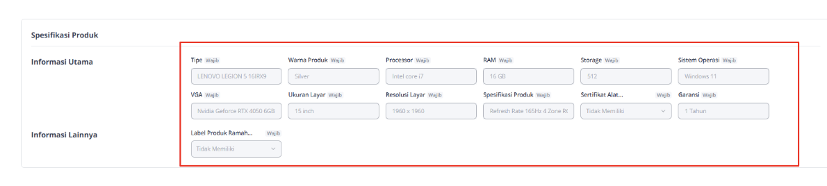 - Ketika Penyedia sudah memilih master produk, beberapa data produk akan terisi secara otomatis oleh sistem. Berikut detail informasi mengenai data produk yang akan terisi secara otomatis oleh sistem: