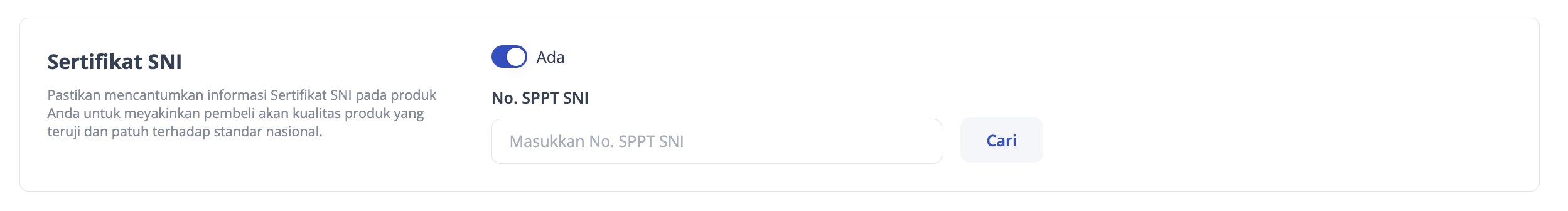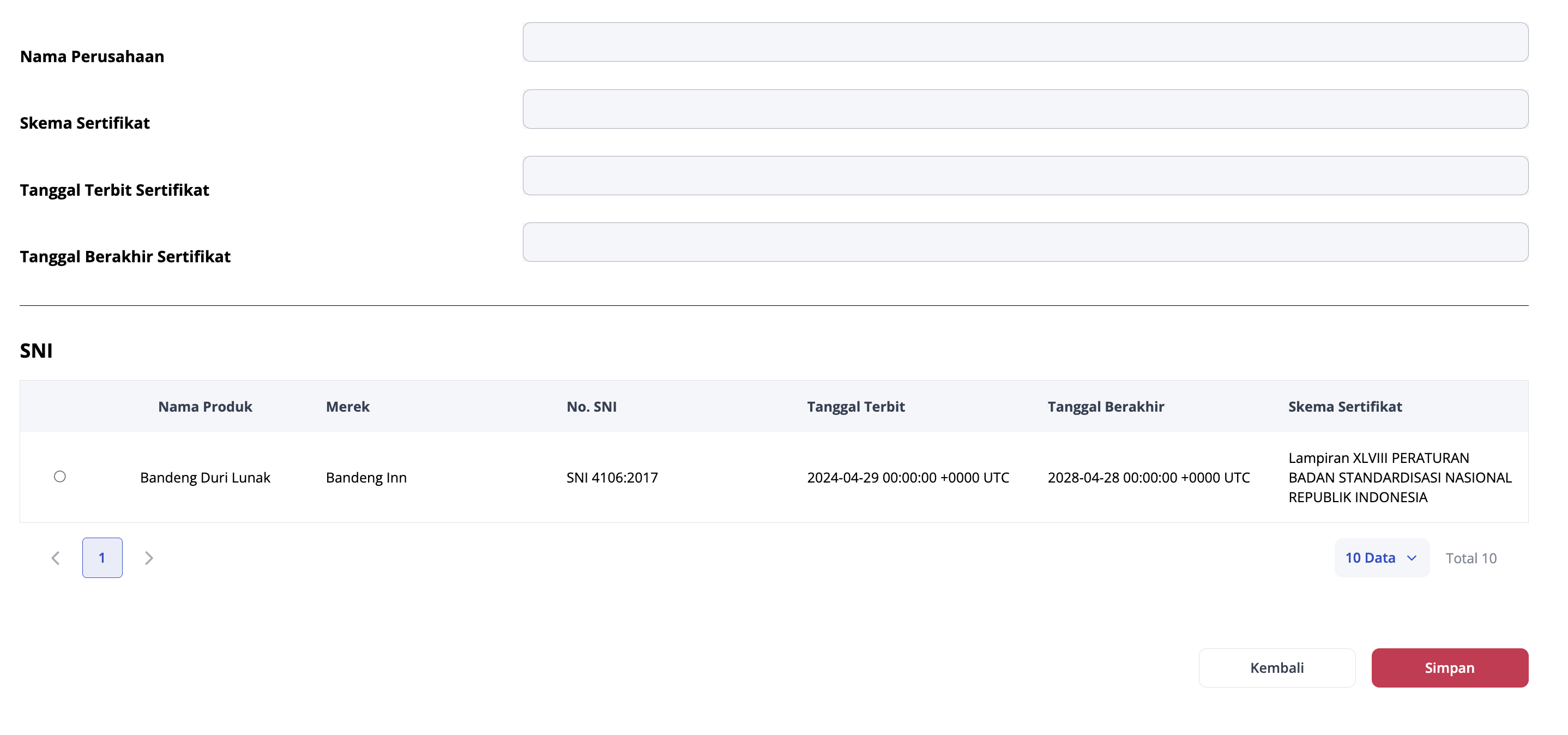 e. Sertifikat SNI: terisi otomatis dan tidak dapat diubah