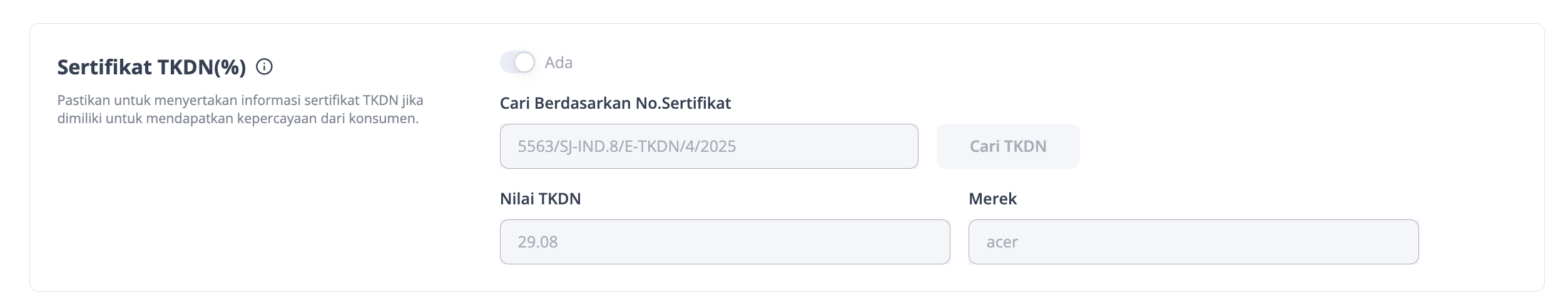 d. Sertifikat TKDN: terisi otomatis dan tidak dapat diubah