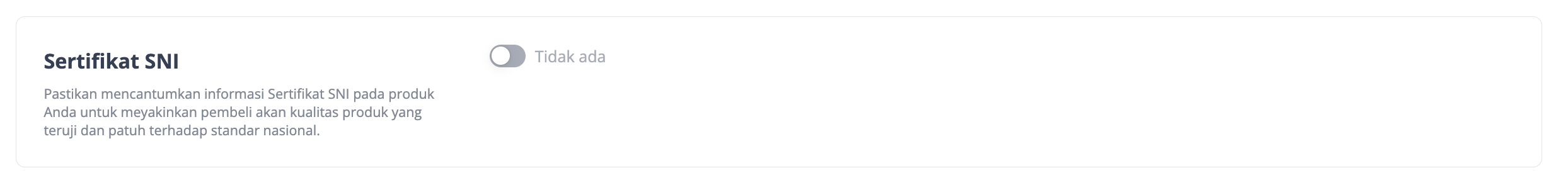 Produk pada kategori obat dan alat kesehatan apabila memiliki sertifikat SNI, maka Penyedia dapat melengkapi detail informasi mengenai sertifikat SNI yang dimiliki.
