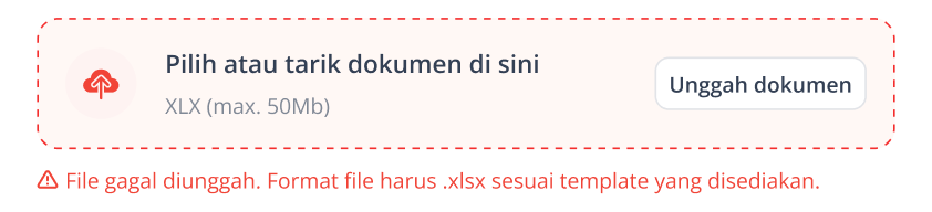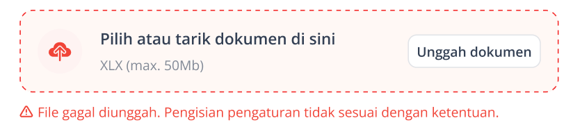 Format file dokumen yang diunggah tidak sesuai, yaitu bukan dalam bentuk .xlsx