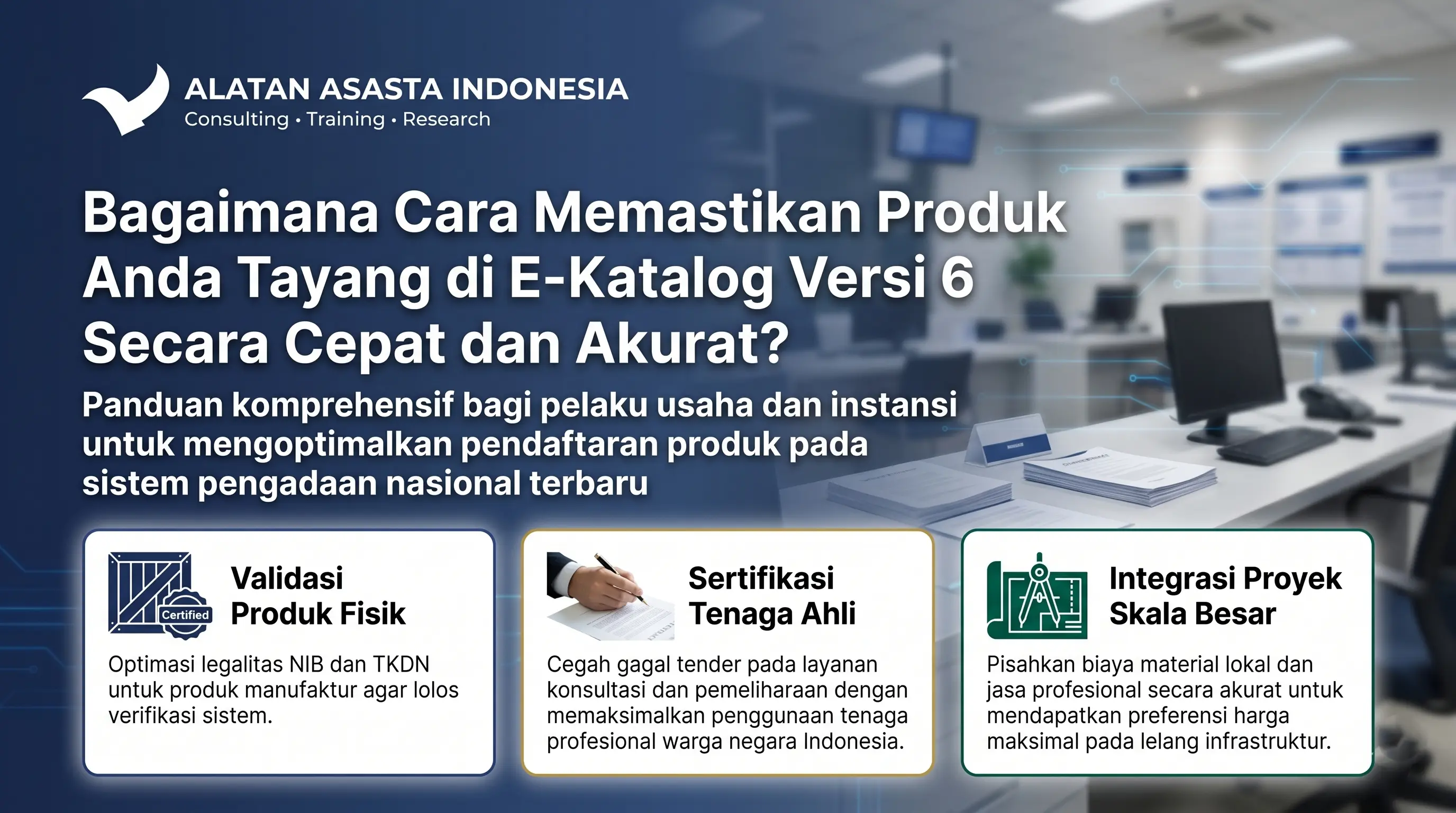 Pelajari garis waktu audit dan strategi penjadwalan dokumen bersama Alatan Asasta Indonesia. Panitia pengadaan langsung mencoret puluhan penawaran proyek konstruksi akibat dokumen sertifikat lokal peserta masih berstatus dalam proses verifikasi. Tragedi administratif ini selalu berulang setiap tahun karena perusahaan baru sibuk mengurus legalitas saat jadwal lelang sudah tayang. Proses audit tingkat komponen dalam negeri membutuhkan waktu berminggu hingga berbulan untuk proses validasi data pabrik. Anda kehilangan potensi pendapatan miliaran rupiah hanya karena keterlambatan satu lembar dokumen resmi. Perusahaan wajib menyiapkan sertifikasi jauh hari sebelum kompetisi lelang dimulai. Temukan alasan mengapa persiapan awal menyelamatkan bisnis Anda. Proses mendapatkan sertifikat, terutama Sertifikat TKDN, tidak terjadi dalam semalam. Bagi Industri Kecil, meskipun terdapat kemudahan self-declare, Anda harus melewati tahap pendaftaran akun di SIINas dan validasi industri oleh pihak Kemenperin. Tahap validasi akun ini seringkali menjadi titik hambat yang tidak terduga. Untuk perusahaan skala menengah dan besar, prosesnya jauh lebih kompleks karena melibatkan lembaga verifikasi independen. Audit dimulai dari penyusunan daftar inventaris material hingga pemeriksaan bukti fisik di lokasi produksi. Jika Anda baru memulai proses ini saat pengumuman lelang keluar, peluang Anda untuk menang sudah tertutup. Tim auditor memerlukan waktu untuk memverifikasi data pemasok dan menghitung biaya tenaga kerja secara detail. Jarak waktu yang ideal untuk memulai persiapan adalah tiga hingga enam bulan sebelum musim tender tiba. Banyak vendor meremehkan beban kerja di instansi pemerintah saat mendekati akhir tahun anggaran atau periode lelang serentak. Antrean permohonan yang masuk ke Sistem Informasi Industri Nasional (SIINas) bisa melonjak tajam. Hal ini menyebabkan waktu tunggu validasi menjadi lebih lama dari biasanya. Kendala teknis pada sistem atau ketidaksesuaian data KBLI dengan izin usaha sering menjadi alasan dokumen tertahan di meja verifikator. Kegagalan sistem atau kebutuhan revisi dokumen memerlukan waktu respon yang tidak sebentar. Jika perusahaan Anda mengirimkan data yang tidak akurat di saat-saat terakhir, tidak akan ada cukup waktu untuk melakukan perbaikan. Jika Anda memerlukan pendampingan ahli untuk memastikan seluruh dokumen administratif perusahaan siap sebelum tender dimulai, segera hubungi kami. Direksi harus menempatkan kepatuhan administratif sebagai bagian dari strategi pemasaran tahunan. Langkah pertama adalah melakukan audit internal terhadap masa berlaku seluruh izin dan sertifikat yang dimiliki. Identifikasi produk mana saja yang sudah memiliki nilai TKDN dan mana yang perlu diperbarui. Harmada Sibuea, selaku CEO Alatan Indonesia, menekankan bahwa pemahaman mendalam terhadap kebijakan publik adalah kunci untuk memenangkan persaingan di sektor B2G (Business to Government). Buatlah kalender kepatuhan yang mencatat tenggat waktu pembaruan dokumen minimal enam bulan sebelum kedaluwarsa. Strategi ini memungkinkan tim marketing bekerja dengan tenang karena seluruh senjata administratif sudah tersedia lengkap. Perusahaan yang proaktif dalam mengurus legalitas akan selalu berada satu langkah di depan pesaing yang hanya bertindak secara reaktif. Alatan Asasta Indonesia memiliki pengalaman luas dalam membantu pelaku usaha meningkatkan daya saing melalui pelatihan dan konsultasi kebijakan sektor publik. Kami memastikan setiap langkah bisnis Anda sejalan dengan regulasi pemerintah yang dinamis. Dapatkan informasi mendalam mengenai taktik menembus pasar pemerintah dan pengembangan usaha yang berkelanjutan. Lihat dibawah ini untuk informasi selengkapnya mengenai layanan kami:Penyebab Utama Vendor Gugur Administrasi Tender Padahal Penawaran Harga Terbaik